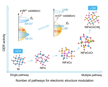 电催化析氧反应(OER)是电解水制氢等清洁能源技术的核心步骤,但其缓慢的反应动力学严重制约了能源转换效率。传统催化剂主要通过金属位点吸附反应中间体(AEM机制)进行催化,存在理论过电位下限。而通过晶格氧直接参与反应的晶格氧活化机制(LOM)虽能突破这一限制,却面临金属高价态不稳定、氧活化困难等挑战。