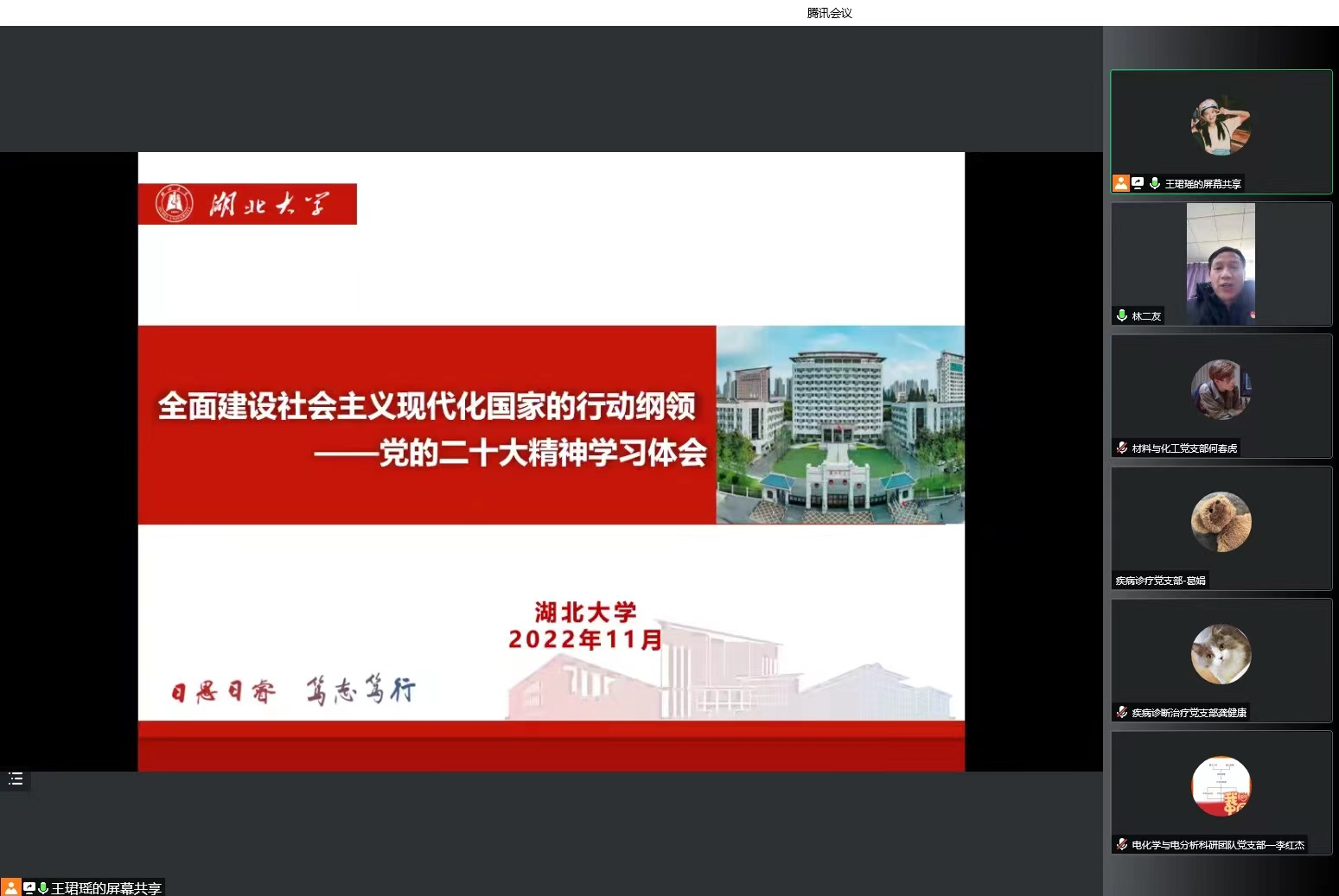 12日8日下午,公司学习宣传贯彻党的二十大精神宣讲团成员、公司党委常委、副董事长王世敏同志赴公司D320会议室,开展党的二十大精神宣讲活动。此次宣讲会以线上、线下相结合的方式举行,威廉希尔williamhill、健康科学与工程公司、艺术公司党委委员和领导班子,创新创业、楚才公司领导班子和支部全体党员在D320会议室参会,四个公司其他教职工及员工支部委员线上参会,会议由公司党委书记林二友主持。