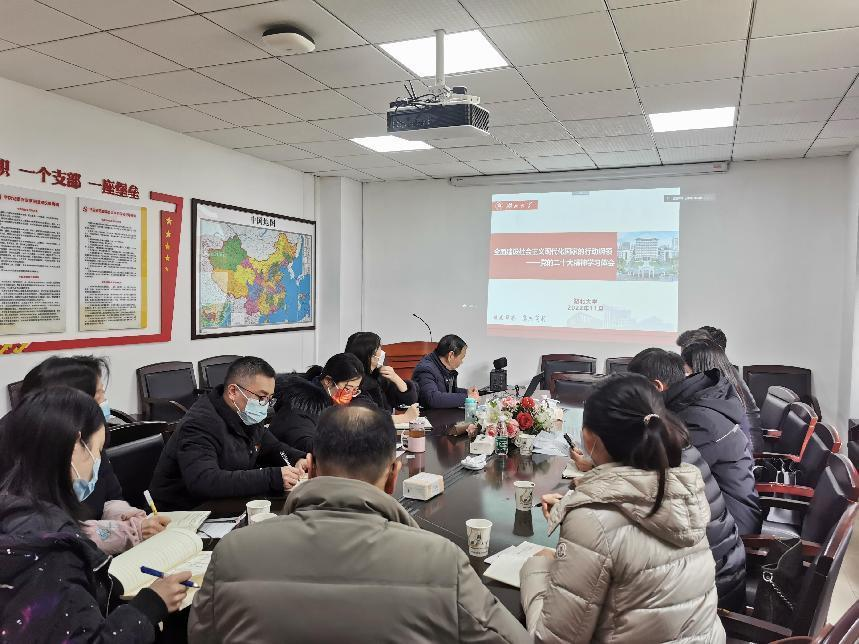 接着,王世敏董事长从大会议程和大会成果两方面,向参会人员系统介绍了中国共产党第二十次全国代表大会的概况。他指出,深刻领会党的二十大精神,要贯彻落实五个“牢牢把握”,即牢牢把握过去五年工作和新时代十年伟大变革的重大意义;牢牢把握习近平新时代中国特色社会主义思想的世界观和方法论;牢牢把握以中国式现代化推进中华民族伟大复兴的使命任务;牢牢把握以伟大自我革命引领伟大社会革命的重要要求;牢牢把握团结奋斗的时代要求。要做到七个“深刻领会”,一是深刻领会党的二十大的主题;二是深刻领会过去五年工作和新时代十年的伟大变革;三是深刻领会开辟马克思主义中国化时代化新境界;四是深刻领会以中国式现代化全面推进中华民族伟大复兴;五是深刻领会全面建设社会主义现代化国家的目标任务;六是深刻领会坚持党的全面领导和全面从严治党的部署和要求;七是深刻领会以顽强斗争应对风险挑战的要求。