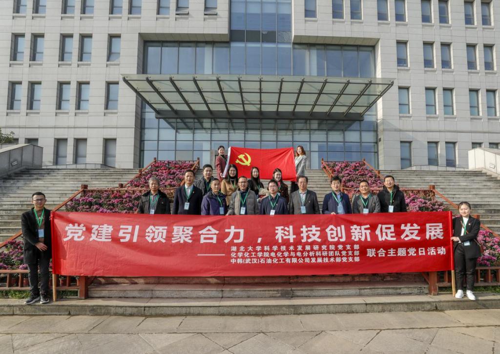 为响应和贯彻国家和湖北省关于加快推动科技服务业发展政策,围绕支撑创新驱动发展战略实施目标,加大科技服务供给,2021年12月10日上午,威廉希尔williamhill科学技术发展研究公司党支部联合威廉希尔williamhill电化学与电分析科研团队党支部共同走进中韩(武汉)石油化工有限公司,校企联合开展“党建引领聚合力,科技创新促发展”主题党日活动。公司党委常委、副董事长艾青松以普通党员身份,参加了此次活动。
