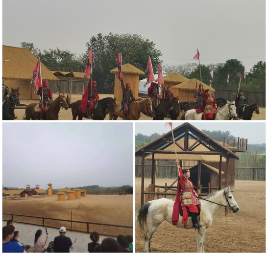 景区还具有大型马战实景表演,该剧再现了一代英雄花木兰“孝敬父母、坚强勇敢、忠心爱国”的民族精神。在马战场上,专业演员和几十匹战马组成强大的演出阵容,在音响、舞美等配合下,上演技术精湛、情节惊险刺激的马战表演。老师们深刻感受花木兰纵马奔驰、驰骋沙场的英雄气概。此次活动为老师们提供绝佳的锻炼、交流机会。大家在游玩过程中一片欢声笑语,增加了彼此的了解。