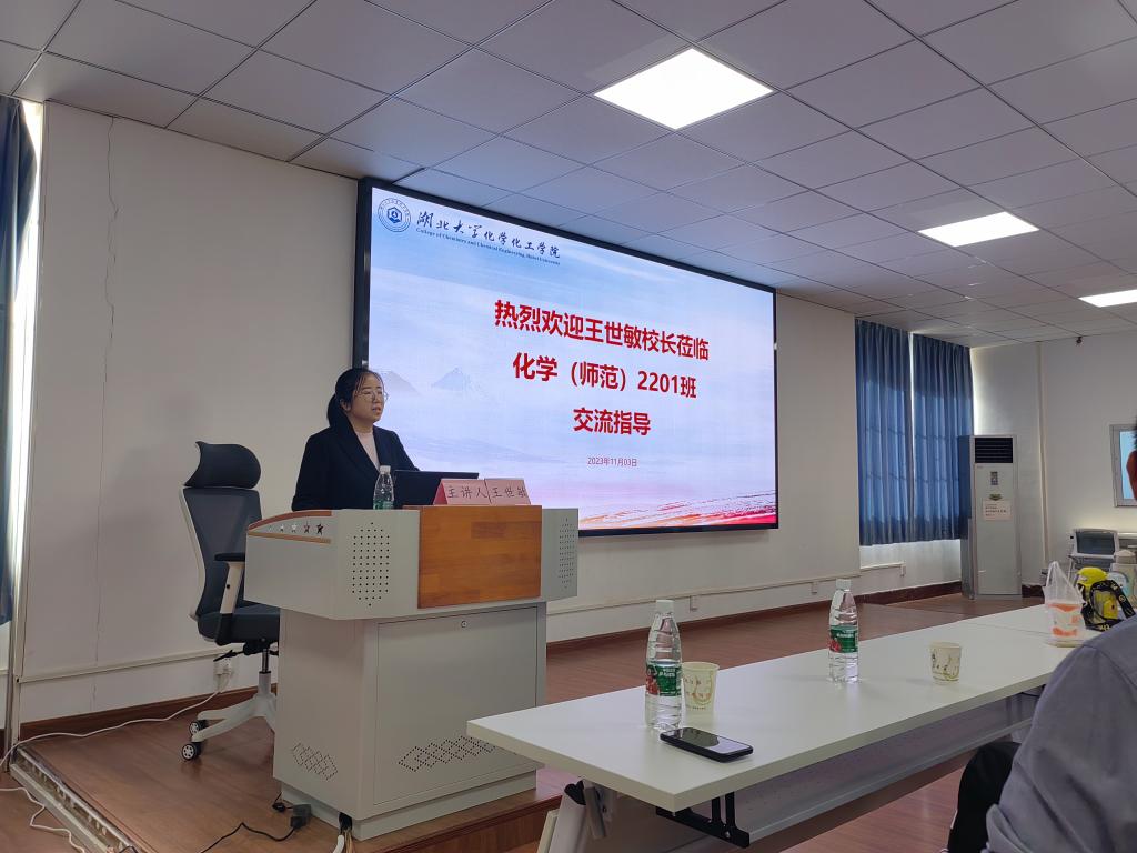 11月3日上午10:00,湖北大公司党委常委、副董事长王世敏应邀至公司为化学(师范)2201班全体员工讲授形势与政策课,授课主题为“材料的进步与人类社会的发展”。公司党委书记林二友、党委副书记刘念参加讲座,化学(师范)2201班班主任李玢洁主持。