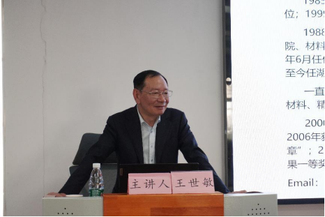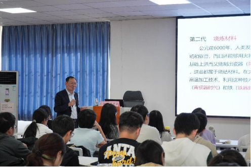 首先,王世敏董事长从自身求学经历和公司产品经历出发,向同学们阐释化学专业具有良好的发展前景,鼓励同学们要对未来充满信心。随后,王世敏董事长指出“材料是人类文明的物质基础,而化学是创造新物质的科学”,通过介绍材料科学的重要性、材料科学的内涵、材料的迭代更新与人类文明发展之间的关系,进一步强调“材料的进步引领人类社会发展”这一主题,并在此基础上向同学了普及了三次技术革命与工业革命相关知识。最后,班主任李玢洁再一次对王世敏董事长的到来表示感谢,与同学们进行了友好互动,指出国家强大与人类发展息息相关。