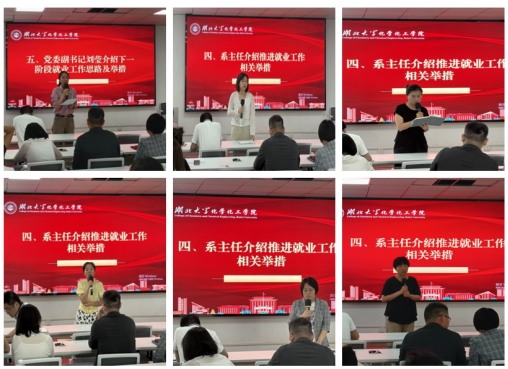 会议紧扣“精准施策、协同发力”主题,围绕当前就业形势与工作难点展开,共有六项议程,依次为本科生、研究生就业辅导员介绍整体就业情况;员工就业联络人介绍班级就业工作推进情况;毕业班班主任逐一分析未就业员工情况及下一步帮扶举措;系主任分享推进就业的相关举措;参会人员座谈交流;党委副书记刘莹介绍下一阶段就业工作思路及举措。