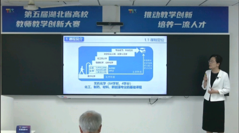 在省赛现场汇报环节,李老师以“铸魂强基高拓”为主题,从课程简介、创新思路、创新举措、创新成效四方面展开阐述。她通过生动的案例展示了如何将学科前沿、工程实践融入理论教学。汇报中,她特别提到:“教育不仅是知识的传递,更是价值观的引领”。