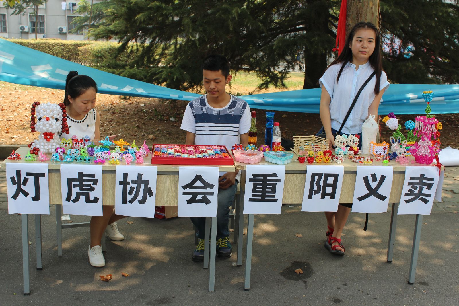 “买材料、选版式、制作手工品……,我们的干事经过连夜赶制,终于创造了一个个精美的手工品,希望同学们能够喜欢并能够热情参与到我们的义卖活动中。”灯虎协会干事胡潘说。